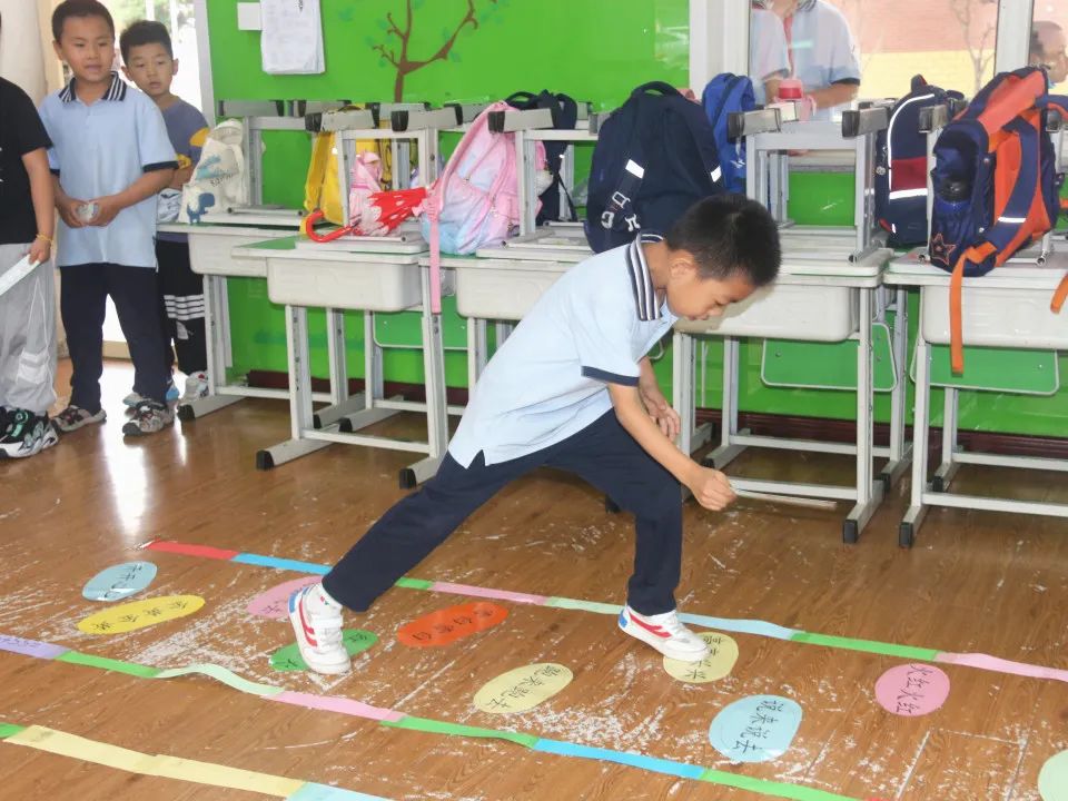 游戲規(guī)則: 設(shè)置三條河,三條河上分別擺放印有語文會(huì)認(rèn)字、數(shù)學(xué)口算題和英語單詞的石頭??忌M(jìn)入考場后,設(shè)置一名考官在語文河前提出過河要求,考生一邊按要求讀出會(huì)認(rèn)字,一邊過河。到了語文河對(duì)岸再按相應(yīng)要求去過數(shù)學(xué)和英語河前,找考官領(lǐng)取題目過河。