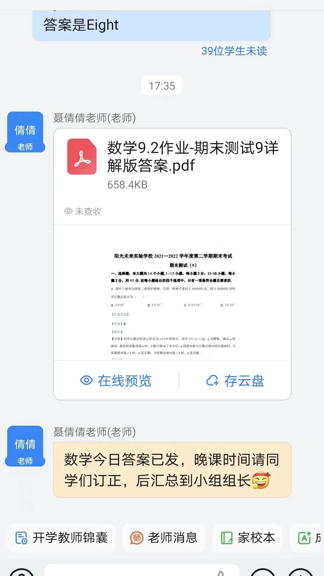 03教師輔導(dǎo),離校不離教 對(duì)班級(jí)學(xué)生整體學(xué)習(xí)情況了解得最透徹的,那必是任課老師。作業(yè)完成后離不開任課老師的反饋和指導(dǎo),隔著屏幕,老師們針對(duì)學(xué)生的作業(yè)進(jìn)行輔導(dǎo)、答疑,使得學(xué)生盡管在家里,所得的收獲也和在校的一樣多。