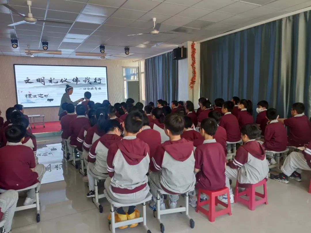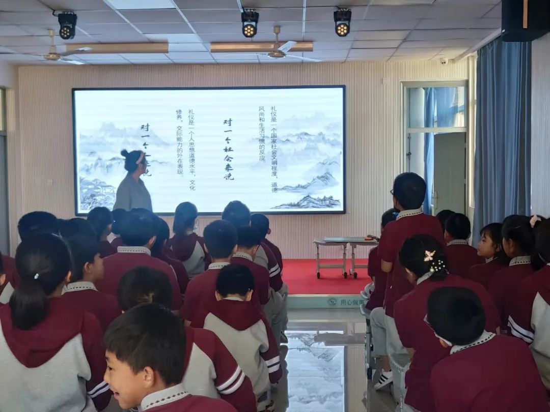 活動上同學們與老師互動交流 在一問一答的形式中 把文明禮儀教育融入到日常教學之中 引導同學們爭做一個 懂禮儀規(guī)范、講文明言語 守公共秩序的好孩子 讓學生爭做“文明禮儀小標兵”