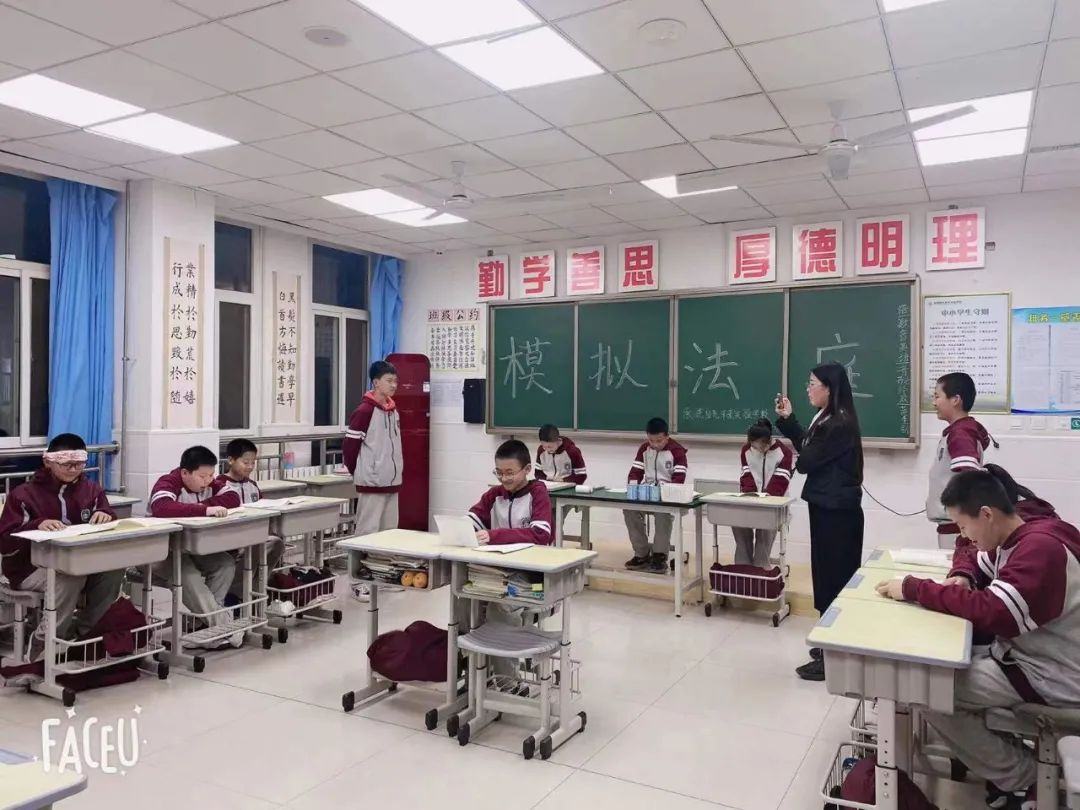 法庭上,同學(xué)們變身小法官、小律師、小法警,宣讀庭審紀(jì)律、發(fā)言答辯、法庭辯論、展示證據(jù),模擬庭審程序一板一眼,宣判有模有樣。“庭審”真實還原一起校園尋釁滋事案,貼近青少年生活實際,以案例教育身邊人,讓學(xué)生們身臨其境地感受到了法律的威嚴(yán)和不可侵犯性。