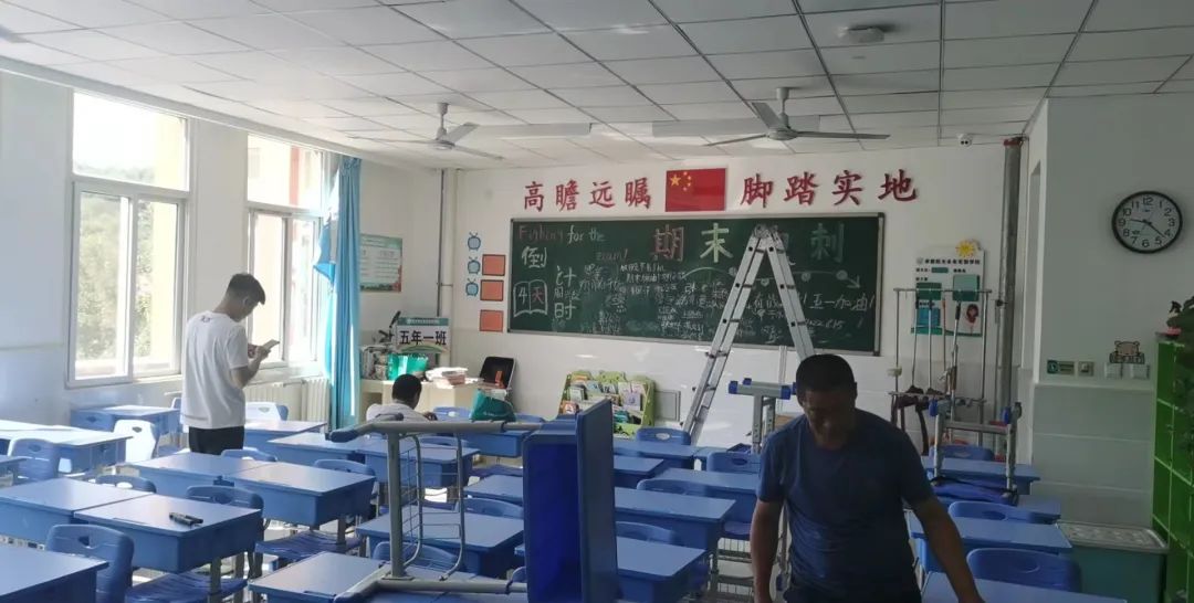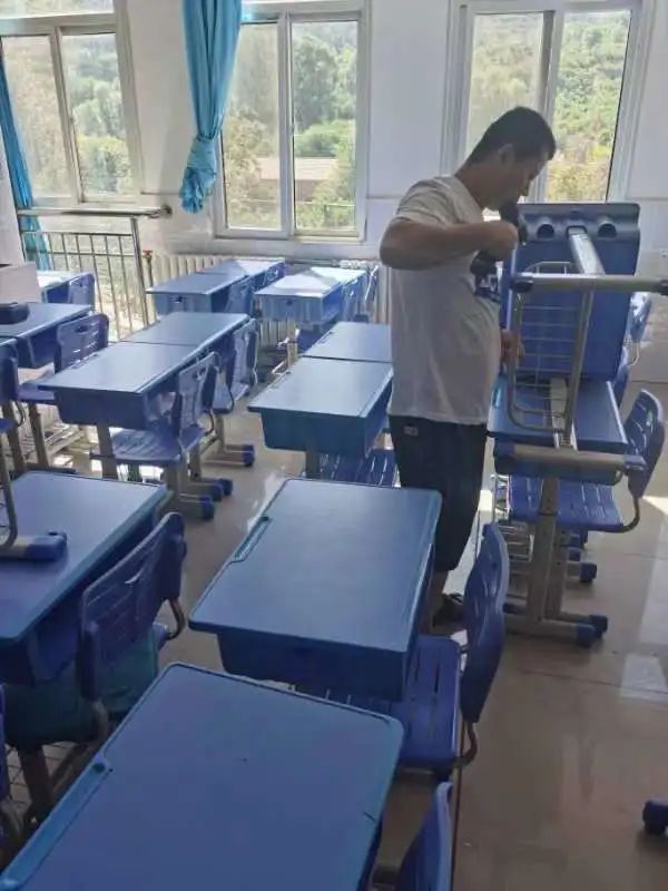 (檢修桌椅) 我校后勤部門扎實(shí)落實(shí)各項(xiàng)排查措施,對(duì)校區(qū)墻體、樓板、排水系統(tǒng)、屋面防水、學(xué)校用電線路、樓頂?shù)冗M(jìn)行了一次“拉網(wǎng)式”排查,確保做到“一個(gè)不漏”,為新學(xué)期開學(xué)做好全面準(zhǔn)備,為全校師生安全保駕護(hù)航。