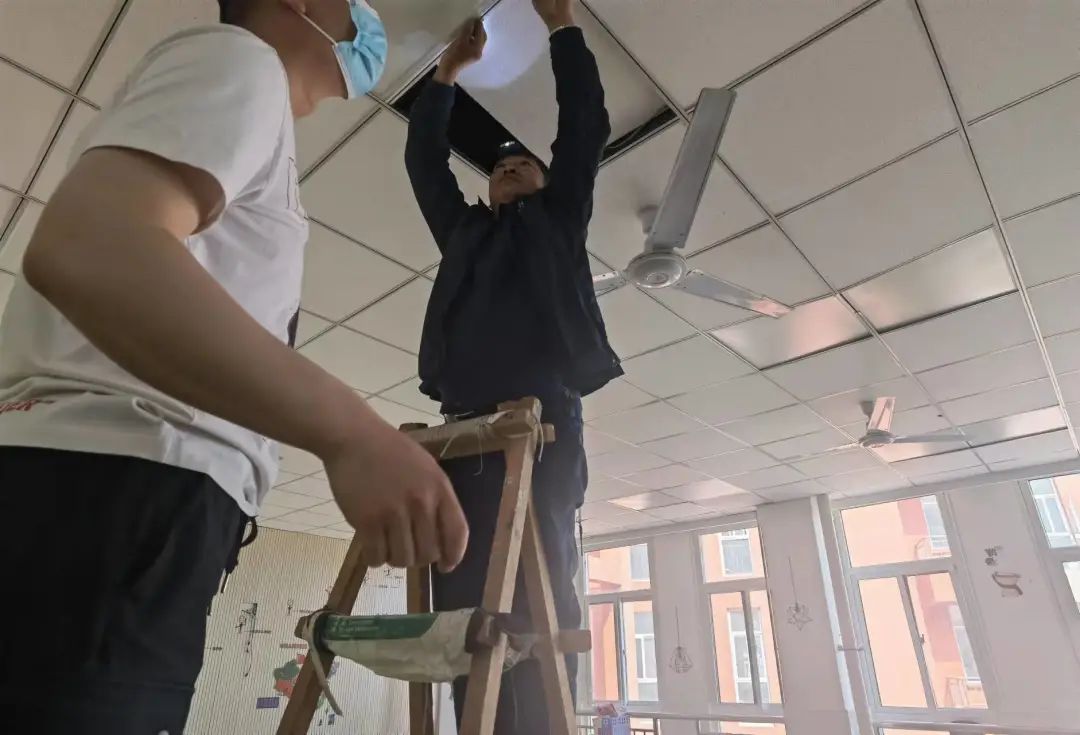 (檢修教室硬件設(shè)備) 夏季學(xué)期已經(jīng)結(jié)束,校園里已經(jīng)沒有了往日里的人來人往,但學(xué)校后勤工作卻從未停止過。在積極建設(shè)完善校區(qū)硬件設(shè)備的同時(shí),排查隱患,安全檢修也是后勤工作的重中之重。