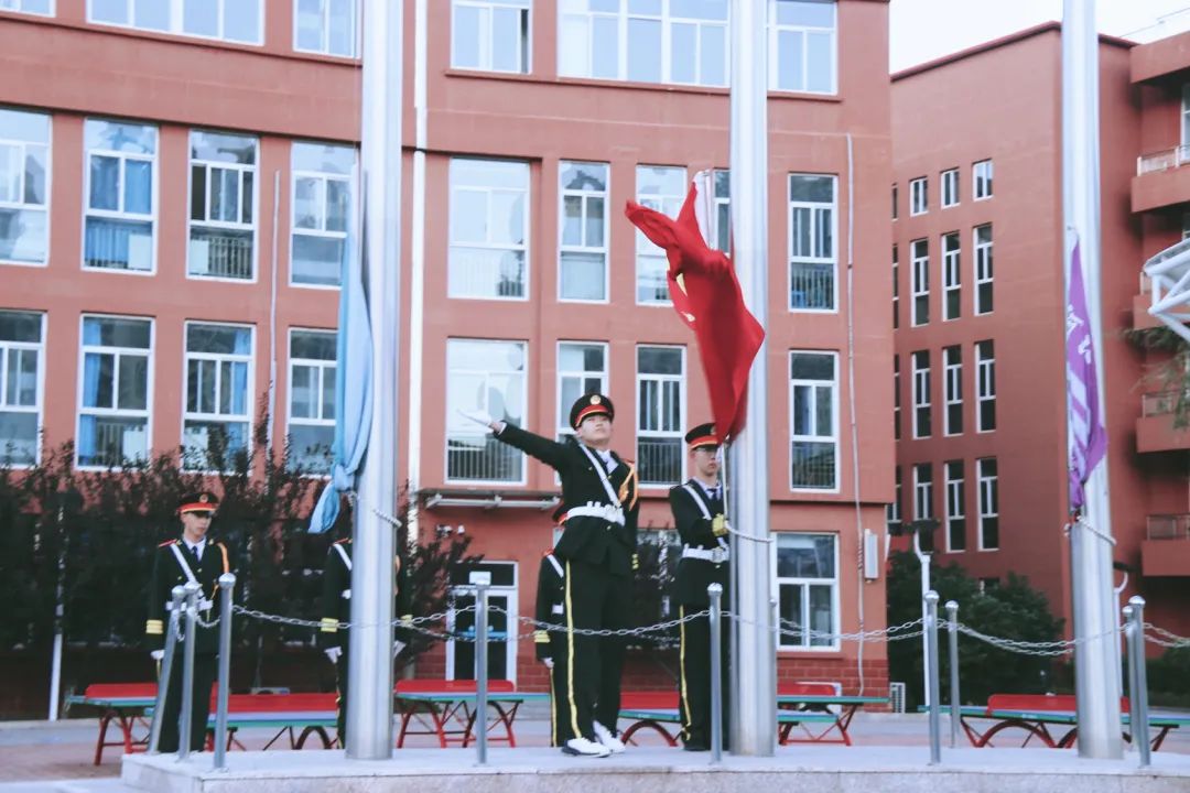 升國旗 奏國歌 沐浴清晨,秋風(fēng)颯起,典禮開始。升國旗,奏國歌,全體肅立,國歌聲起,熱血沸騰,鮮紅旗幟激勵少年心。