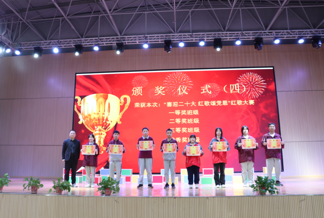 激情嘹亮的歌聲,勾出百年難忘的回憶,收放自如的指揮,描繪氣勢磅礴的激情。紅歌如畫,展現(xiàn)光輝歷程,學(xué)子如歌,道出豐功偉績,是拳拳愛國心、殷殷愛黨情,更是陽光學(xué)子堅(jiān)持不懈、步履不停的誓言! 頒獎儀式 比賽結(jié)束后,主持人公布了此次系列活動的獲獎名單,校領(lǐng)導(dǎo)為獲獎學(xué)生和班級頒發(fā)證書。