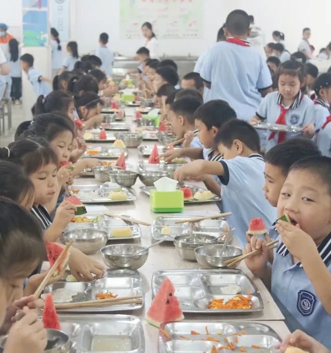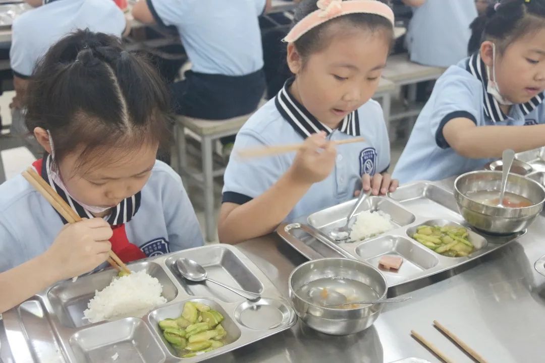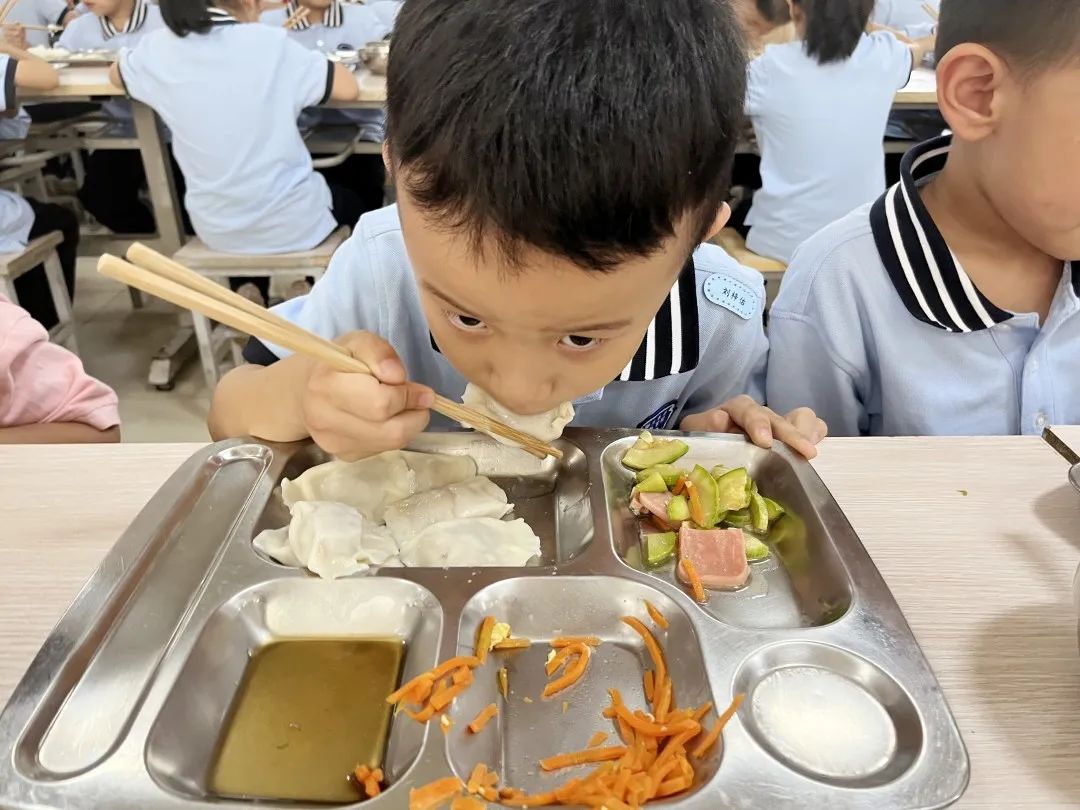 食堂就餐 在老師們的帶領(lǐng)下,每個(gè)班級(jí)都有序地進(jìn)行用餐。新生們很快就學(xué)會(huì)了如何排隊(duì)領(lǐng)取午餐并文明用餐。種類豐富,美味可口的佳肴讓人大快朵頤,處處可見(jiàn)洋溢著幸福滿足的笑臉。