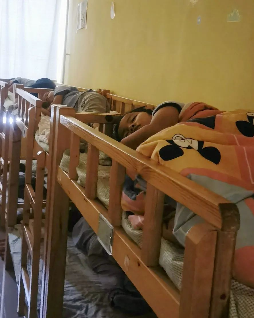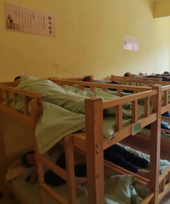 宿舍午睡 吃完午飯,在老師的帶領(lǐng)下,同學(xué)們稍作休息,開(kāi)始排隊(duì)進(jìn)宿舍午休。大家自覺(jué)擺放好自己鞋子,上床準(zhǔn)備睡覺(jué)。
