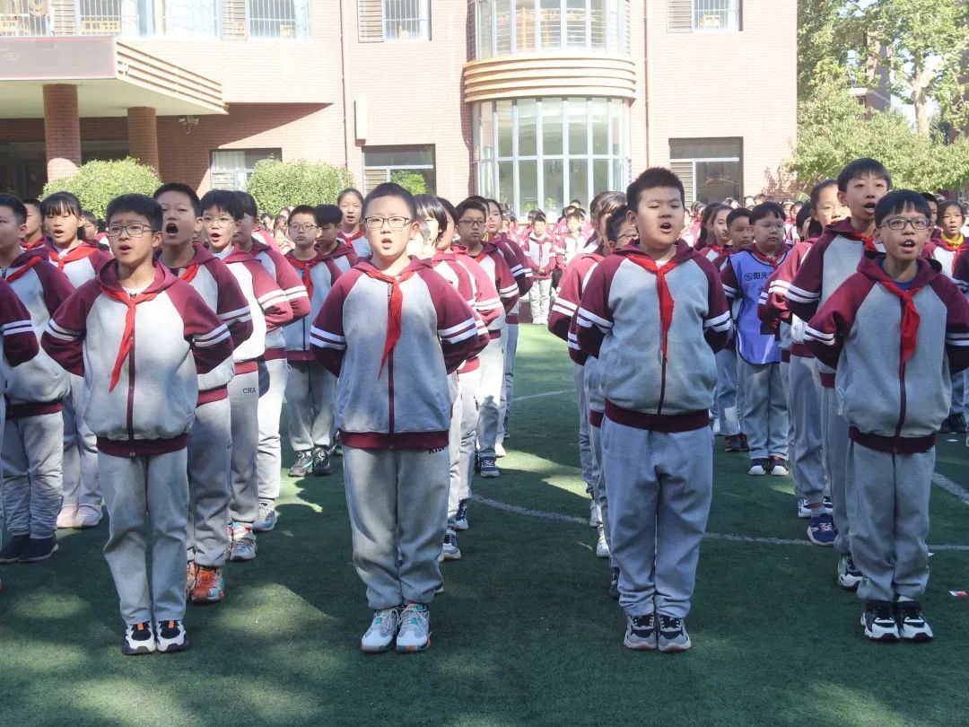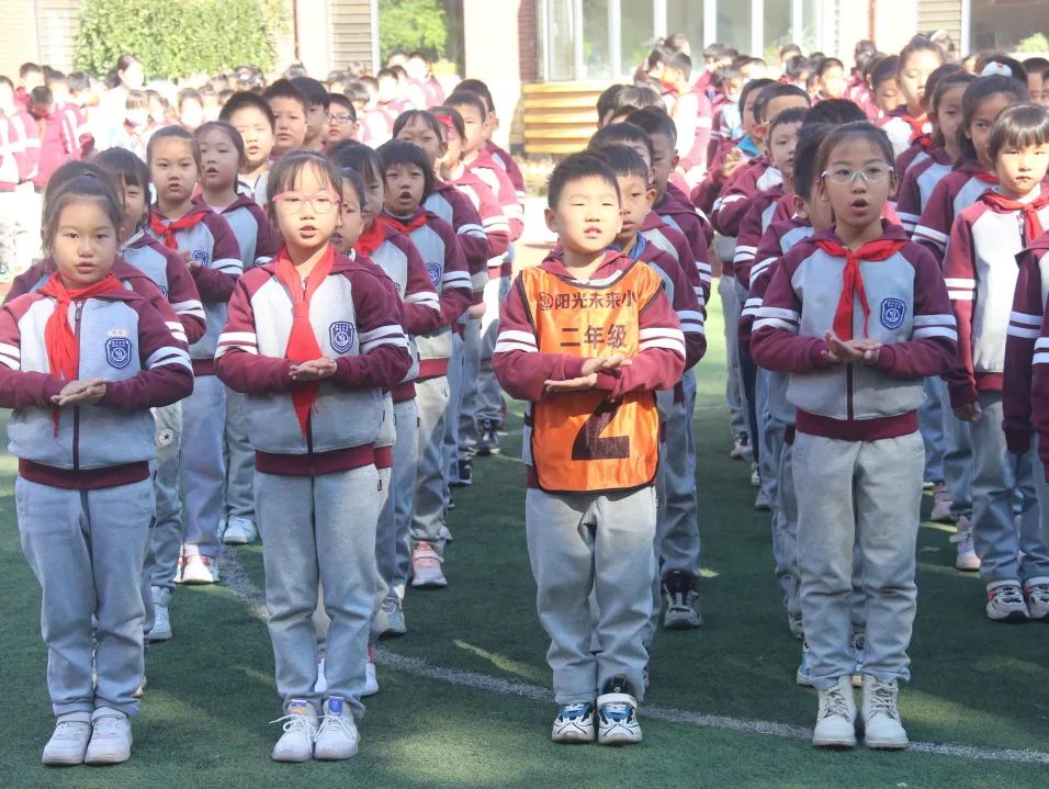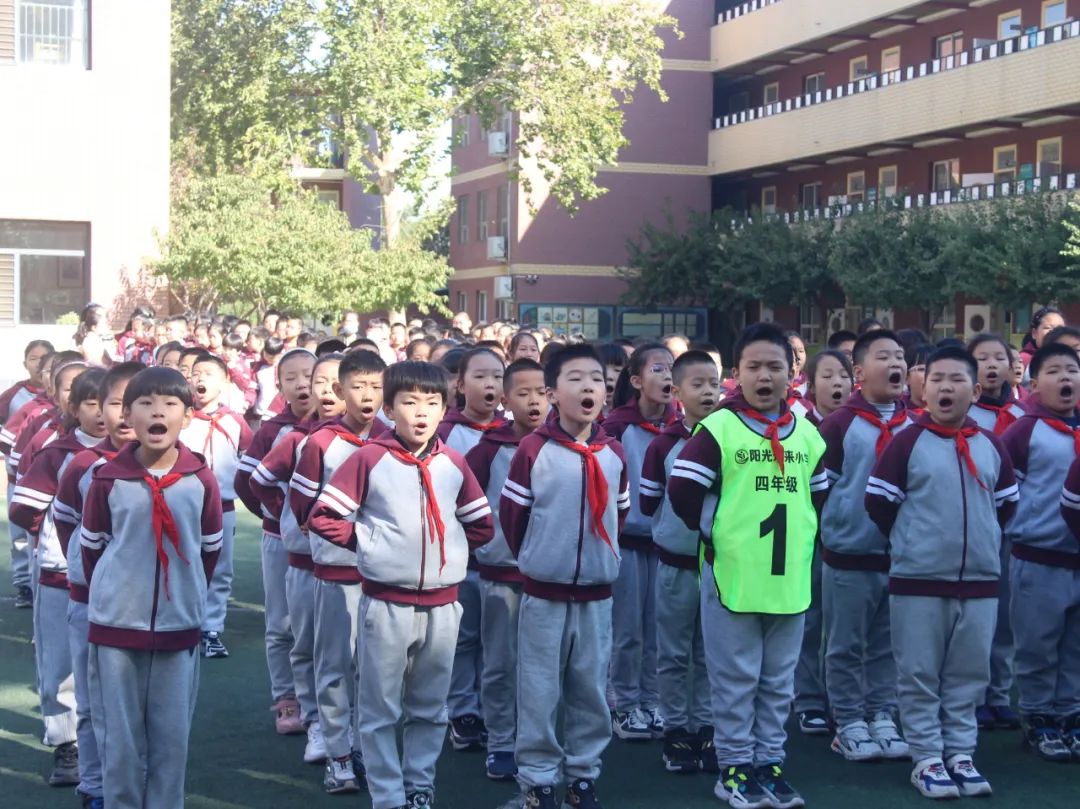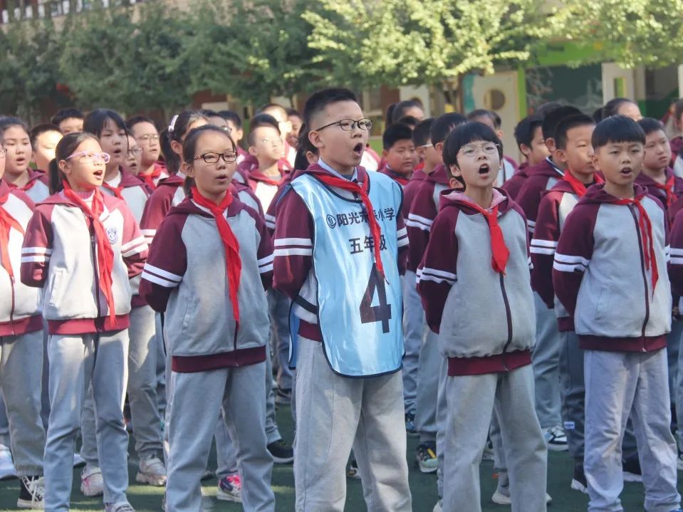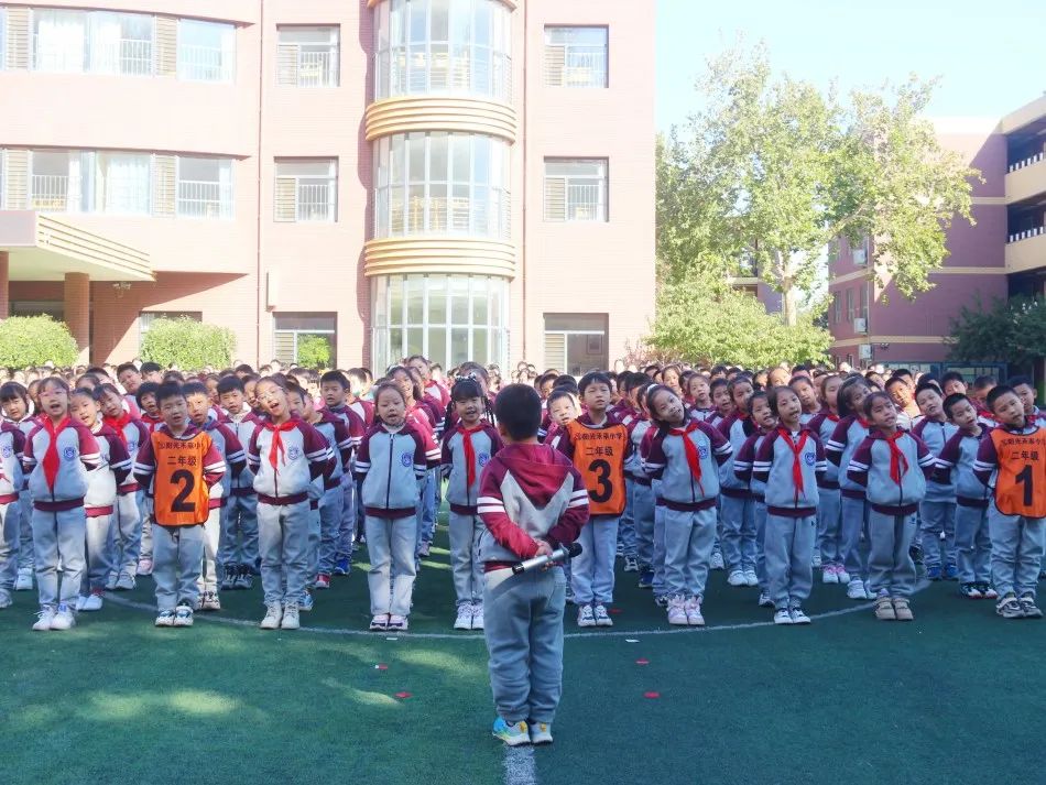 04 四 年 級 四年級同學們站立筆直如一顆顆茁壯生長的小松樹,誦讀了《觀滄?!泛汀讹嬀啤?,引起師生們陣陣喝彩。
