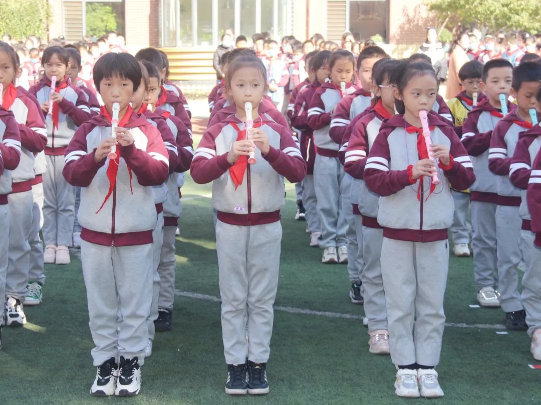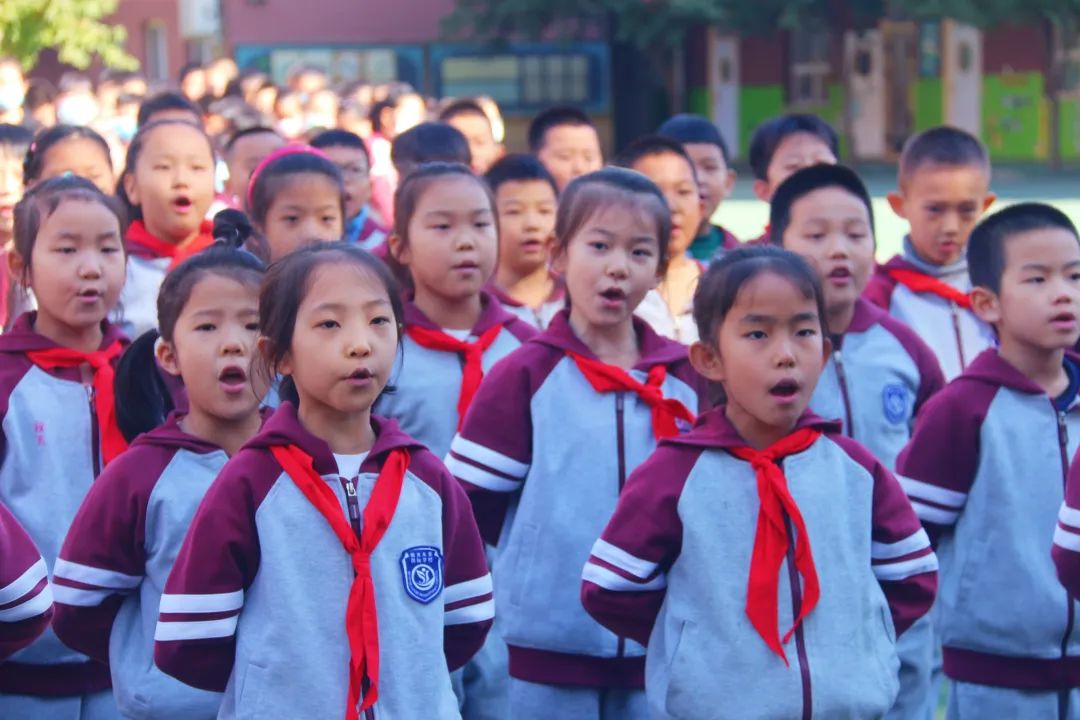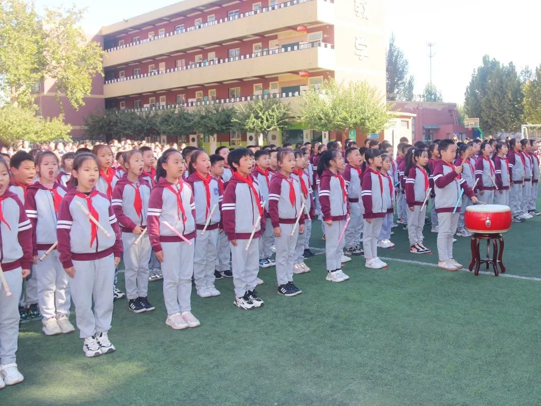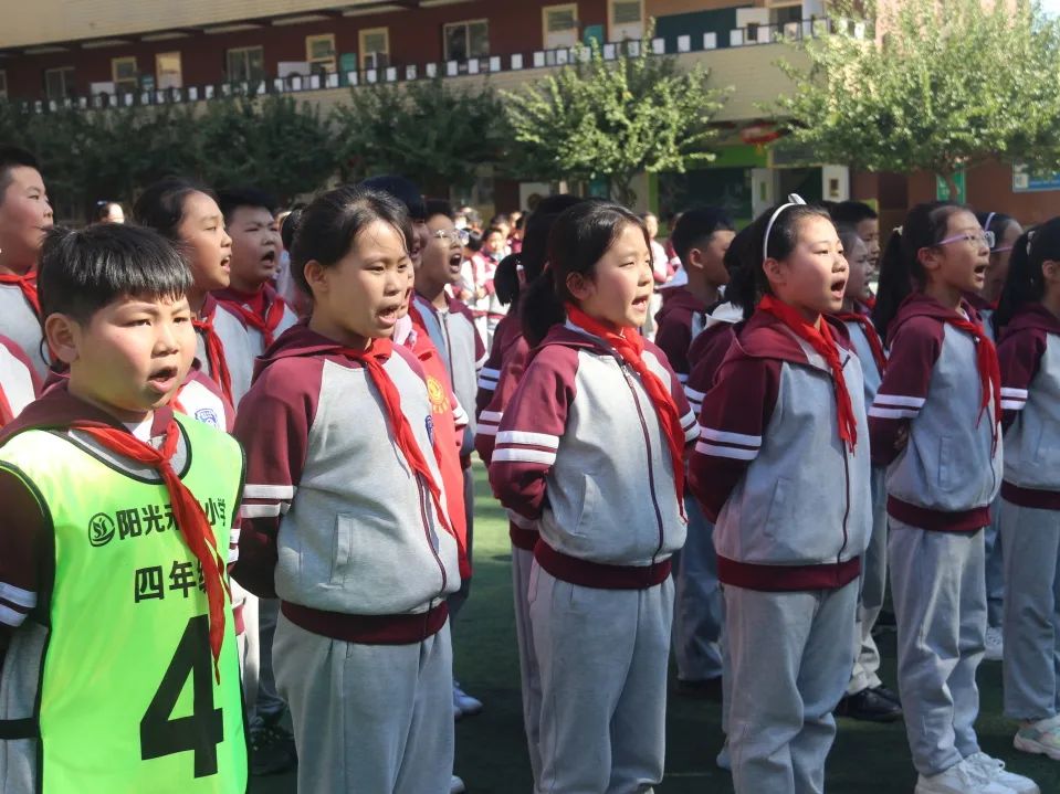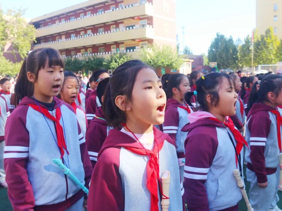 04 四 年 級 四年級同學們站立筆直如一顆顆茁壯生長的小松樹,誦讀了《觀滄?!泛汀讹嬀啤?,引起師生們陣陣喝彩。