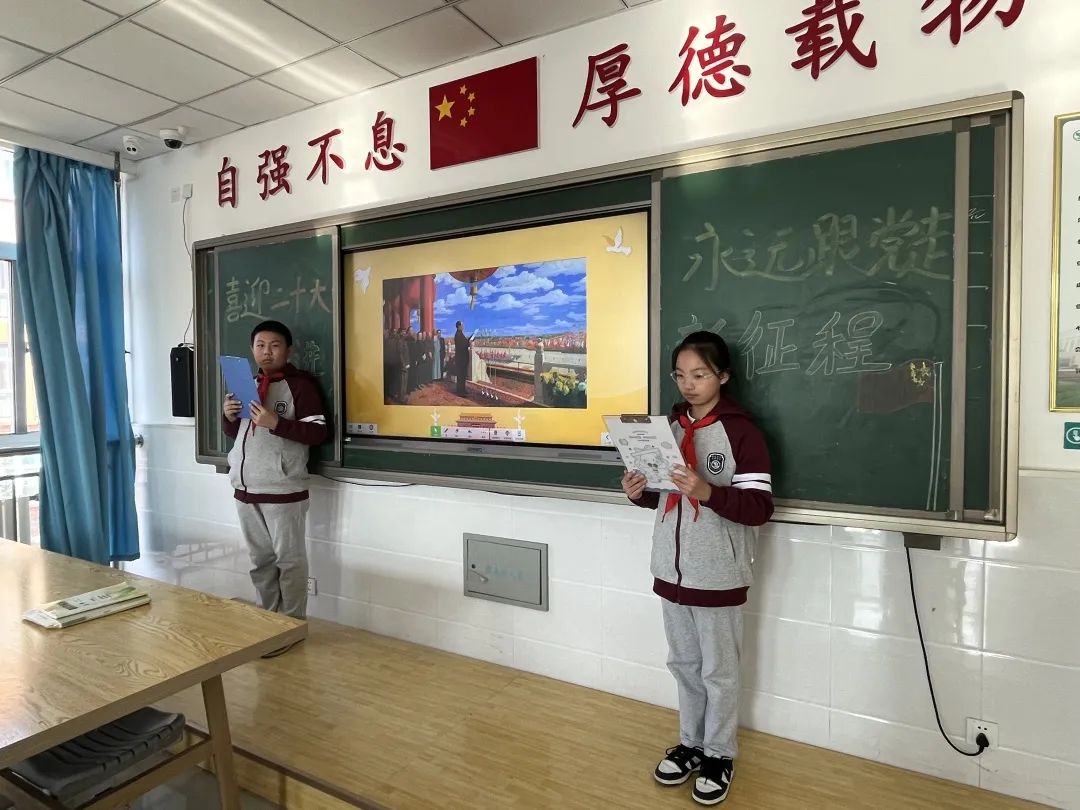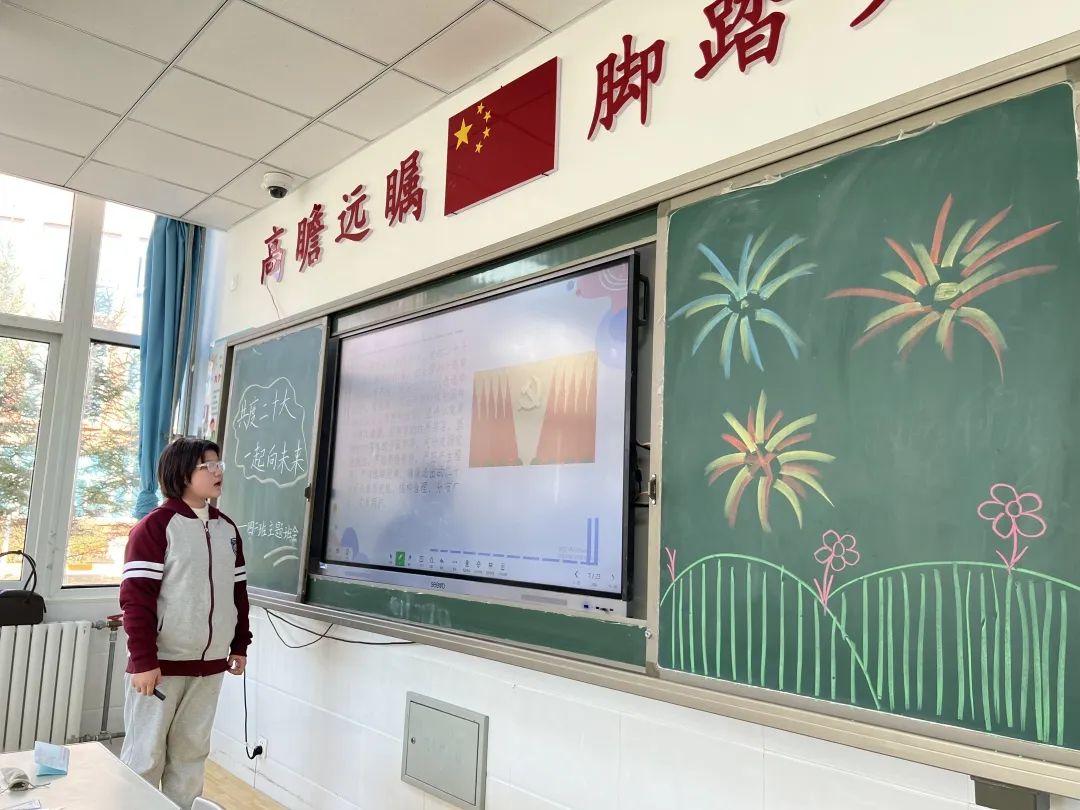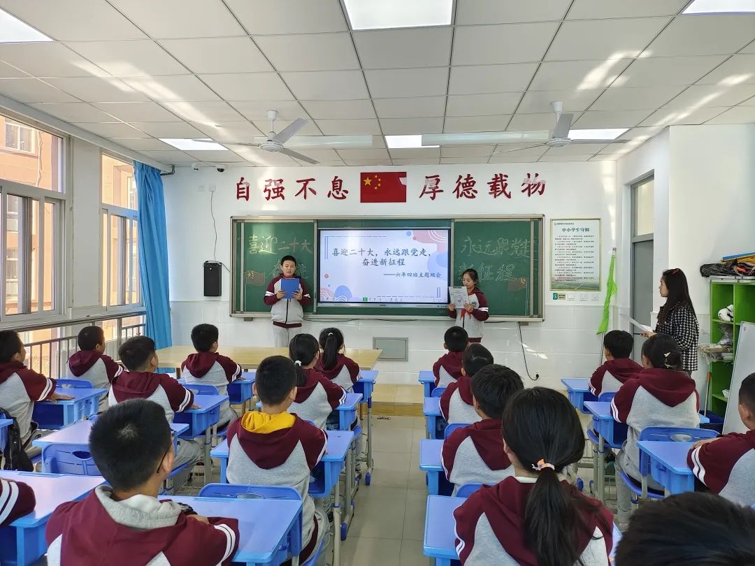 主題班會活動(dòng)中,各班師生共同分享黨史故事,講述黨的二十大召開的重大意義,通過圖片、視頻等不同形式,了解中國共產(chǎn)黨艱苦卓絕的奮斗歷程。同學(xué)們紛紛表示:要接好歷史的接力棒,聽黨話、跟黨走,努力成長為擔(dān)當(dāng)民族復(fù)興大任的時(shí)代新人!